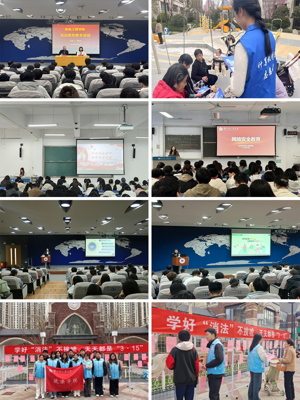 机电工程学院邀请上海锦天城(郑州)律师事务所资深律师、合伙人李延年老师,作《刑法串讲——从大学生面临的刑事风险出发》主题报告;食品与生物工程学院开展《中华人民共和国网络安全法》与《中华人民共和国反电信网络诈骗法》学习;经济与管理学院举办“弘扬宪法精神,共育法制校园”主题团日活动;计算机科学与技术学院在嘉木苑社区开展“全民反诈,你我共行”电信网络诈骗宣传;政法学院结合“国际消费者权益日”,通过绕口令朗读比赛和编印成通俗易懂的宣传手册等创新形式开展“3·15”国际消费者权益日普法活动;数学与信息科学学院邀请河南泰豫恒律师事务所主任段学聪律师,段律师通过丰富的案例和生动的讲解解读了与学生生活息息相关的民事法律关系、刑事法律关系、劳动法律关系等;新能源学院邀请郑州市公安局金水分局反诈中心李敏警官围绕电信网络诈骗是开展反诈骗安全知识讲解。