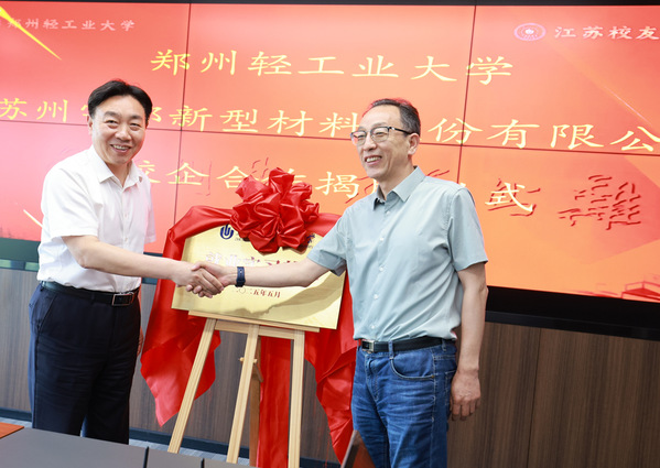 校党委书记张志坚和宇邦新材董事长肖锋共同为就业实习基地揭牌