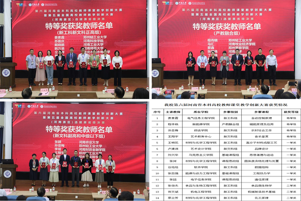 近日,河南省教育厅公布了《关于第六届河南省本科高校教师课堂教学创新大赛获奖名单的通知》,我校荣获特等奖4项、一等奖7项、二等奖3项,获奖层次和数量创历年最好成绩,其中,姜素霞、程传晓、孙亚梅3位老师成功获得了代表河南省参加全国高校教师教学创新大赛的资格,实现了我校该项赛事国家级参赛人数的新突破。