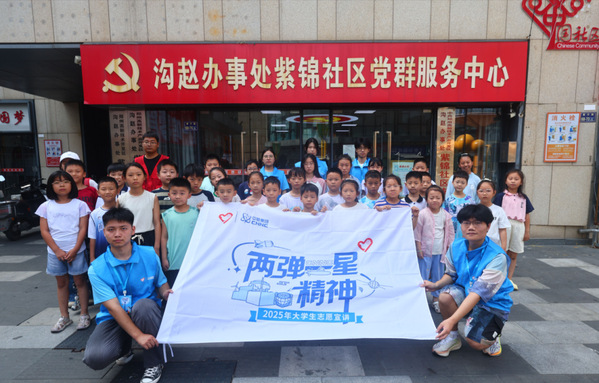 软件学院“青衿传炬”志愿宣讲团在成功入选2025年全国大学生“两弹一星”精神志愿宣讲团后,先后走进郑州市高新区紫锦社区、郑东新区外国语中学以及鹤壁市城乡一体化示范区古城街道浦江社区,以沉浸式科普形式开展主题宣讲活动。整场活动紧密结合儿童的认知特点,通过动画、游戏、趣味教具等多种形式,设计摸箱探索、图片解析、知识问答、情景演绎等互动环节,使“两弹一星”精神与核科技知识变得可触可感。孩子们在轻松愉快的氛围中不仅学习了科学知识,更深刻感受到科技报国、自强不息的精神力量,悄然埋下崇尚科学、立志报国的理想种子。本次实践活动既是一次生动的科学精神普及,也是一堂深刻的思想信念教育,切实推动了“两弹一星”精神在青少年心中的传承与弘扬。