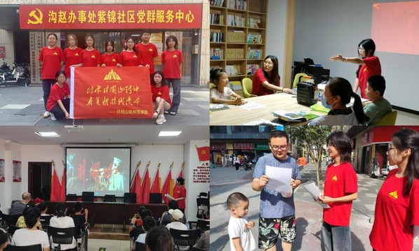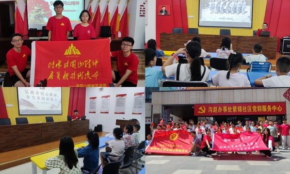 全国大学生“井冈山”精神志愿宣讲团队——电子信息学院“轻”火燎原队分别来到郑州市紫锦社区党群服务中心、紫竹社区党群服务中心开展“弘扬井冈山精神,传承红色基因”主题宣讲社会实践活动。宣讲团队志愿者们带领社区青年儿童一起诵读毛主席的作品《西江月·井冈山》,并观看了视频《走,我们穿越井冈山!》,在句句诗词中感受井冈山将士坚守根据地的英勇斗争精神,在帧帧画面中重温中国革命的摇篮井冈山根据地所承载的红色记忆,以“行程万里,不忘初心,弘扬井冈山精神”为题介绍了井冈山革命根据地的建立、井冈山精神的科学内涵、井冈山精神的现实意义。