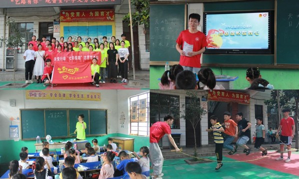 全国“七彩假期”志愿服务示范团队——艺术设计学院“艺路有你”乡村义务支教服务团来到河南省禹州市花石镇观音堂小学,开展暑期“三下乡”乡村义务支教系列社会实践活动。支教团队以推动乡村美育教育为核心,以文化课知识辅导为辅助,为孩子们带来了一场丰富多彩的学习盛宴。美术课上,孩子们发挥无限的想象力和创造力,通过画笔和颜料创作出属于自己的艺术作品;书法课中,孩子们学习了硬笔和毛笔书法的基本技法,感悟到中国传统文化的魅力;文化课上,孩子们跟随者志愿者老师为新学期的学业进行了预习准备,为学业打下坚实的基础;音乐课里,孩子们在欢乐的歌声中感受到音乐的魅力。此外,支教服务团的同学还担任起了临时班主任的职务,在生活中担负起照顾小朋友们生活的责任。