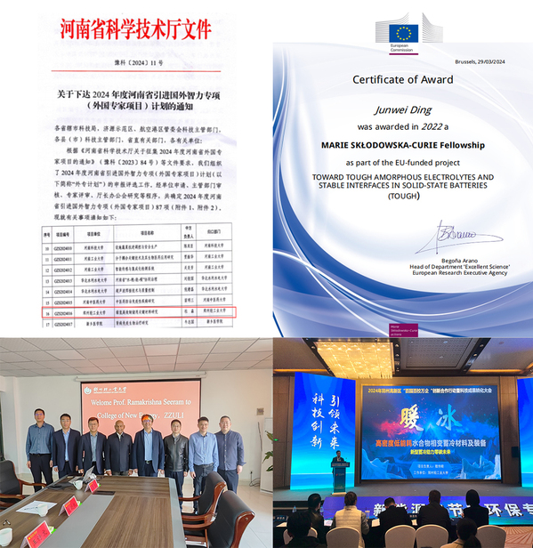 加强国内外交流,实现资源共享。学院始终以深化国际交流合作、提升教育开放水平为目标,着力构建“学院统筹推进、教师深度参与、学生全面融入”的三位一体国际交流合作体系。聘任欧洲科学院院士、欧洲科学与艺术学院院士刘建德等担任学科特聘教授,获批河南省杰出外籍科学家工作室。邀请中国工程院外籍院士Seeram Ramakrishna教授指导学科建设及科研工作;邀请俄罗斯圣彼得堡ITMO大学Elena F. Krivoshapkina教授、Pavel Krivoshapkin教授等国际化人才来我院进行学术交流,通过高频次的国际学术互动,营造多元开放的学术氛围。立足学科特色与发展需求,主动拓展特色化国际合作项目,承办了2024年郑州高新区“百园百校万企”创新合作行动暨科技成果转化大会、开云手机版登录入口首届新能源青年科学家论坛会议;2名青年教师完成海外研修计划;1名本科生参与“2024新青年全球胜任力人才培养计划”的中外合作项目。学院逐步形成以高端人才为核心、以国际合作为纽带的创新生态,为新能源领域的学术突破与产业升级提供了坚实的人才支撑与智力保障。