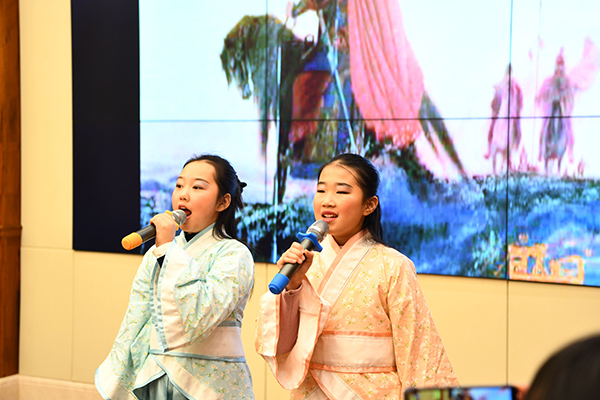 在吟诵交流展示环节,作为全国高校“礼敬中华优秀传统文化”特色展示项目推广单位,我校学生以华调和字调展演了《清平乐▪村居》《诗经▪鹿鸣》。华锋、陈江风等吟诵名家与濮阳市油田第四小学的学生即兴赋诗吟咏,尽显优雅的古典魅力。