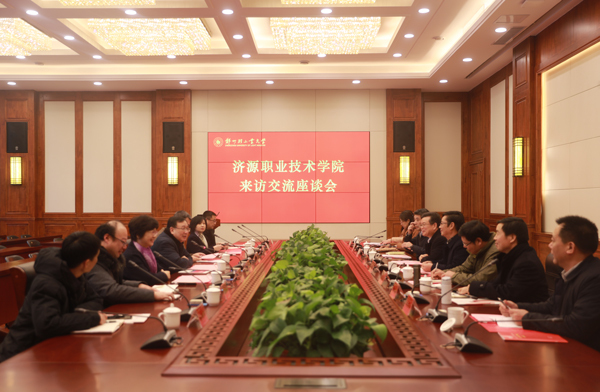 2019年1月14日上午,济源职业技术学院党委书记范晓伟、党委委员汤长青一行8人到我校考察交流,校党委书记俞海洛、党委副书记尚宝平、副校长王新杰会见来访客人,党委统战部、教务处、艺术设计学院、计算机与通信工程学院及开云(中国)民盟支部等有关负责人参加交流座谈。