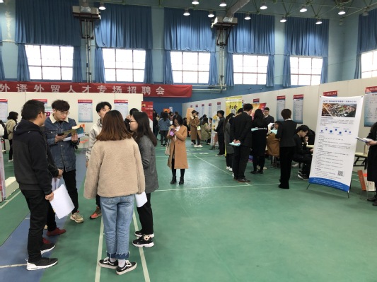 3月14日,我校2019年外语外贸人才专场招聘会在东风校区体育馆举行。河南省外事侨务服务中心、黎明重工科技、河南国立控股有限公司、郑州联大教育集团等50余家优秀企业参会,为英语、朝鲜语、汉语国际教育、国际贸易、文秘、电子商务等专业毕业生提供就业岗位300余个。近千名毕业生参加了招聘会,初步达成就业意向100余人。