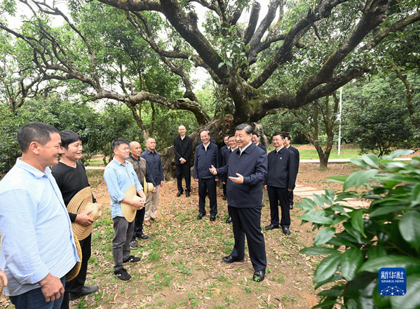 4月10日至13日,中共中央总书记、国家主席、中央军委主席习近平在广东考察。这是11日下午,习近平在茂名高州市根子镇柏桥龙眼荔枝专业合作社考察。新华社记者 李学仁 摄