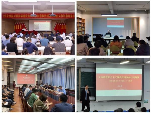 学院依托党委讲师团、青年讲师团,迅速组织力量、精心遴选讲题、认真备课备讲。主题教育开展以来,组织宣讲团成员围绕“深刻把握习近平新时代中国特色社会主义思想的世界观和方法”“中国式现代化的理论逻辑与实践要求”等主题,先后赴黄河水利委员会、郑州轨道工程职业学院等政府机关、企事业单位及校内二级单位,围绕主题教育开展理论宣讲20余场次。