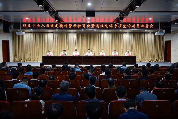 会上,与会人员集中观看了警示教育片《徙木立信》。党委副书记杨新宇传达了省纪委监委、省委学习教育工作专班《关于集中开展违规吃喝专项整治的工作方案》。纪委书记、监察专员顾兴良传达了中央层面学习教育工作专班、中央纪委办公厅发布的典型案例通报,宣读了省委关于深入贯彻中央八项规定精神严禁违规吃喝、严禁违规收送礼品礼金、严禁侵害群众利益、防范和纠治不担当不作为问题的若干规定。
